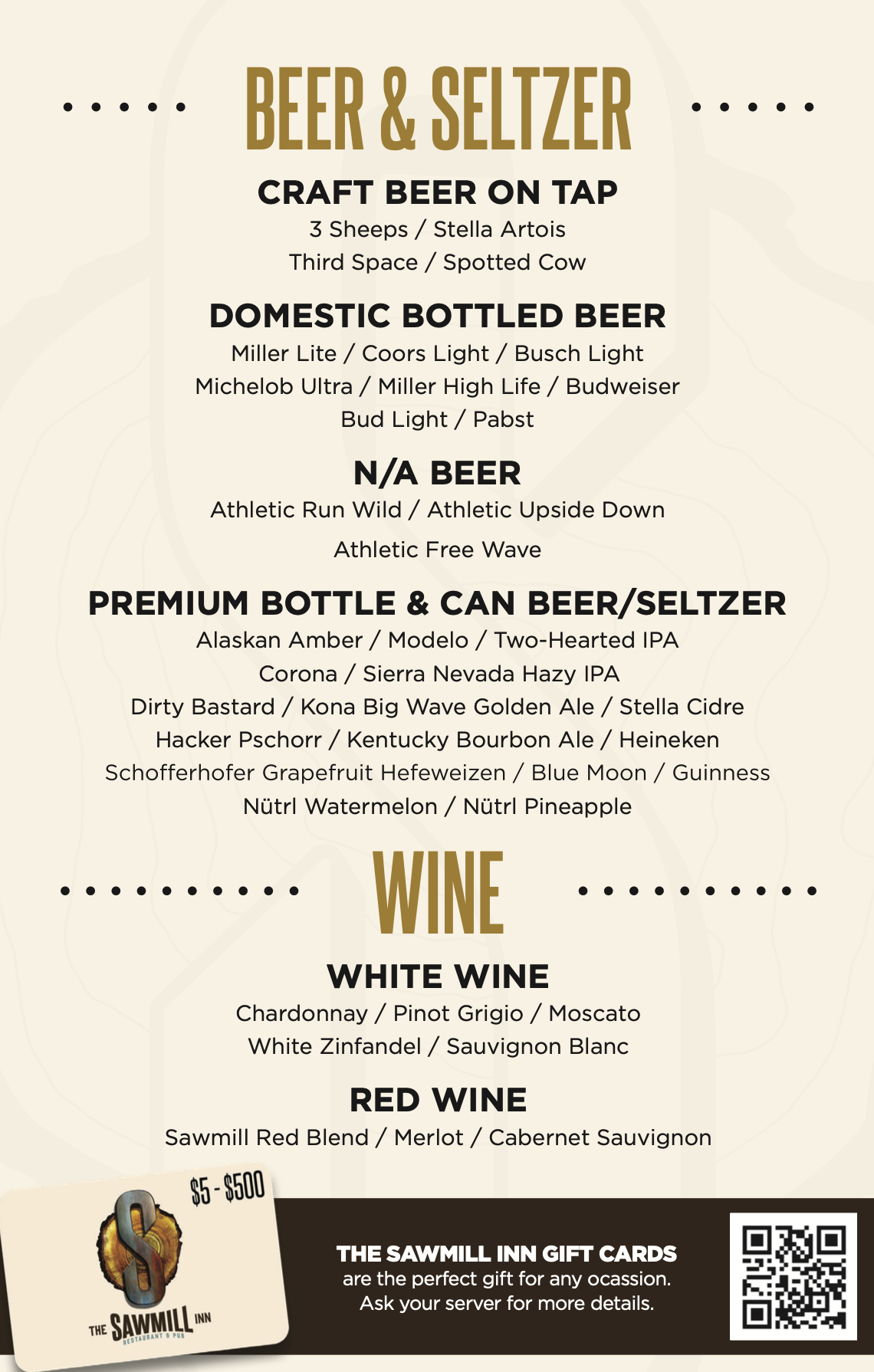 sawmill-inn menu